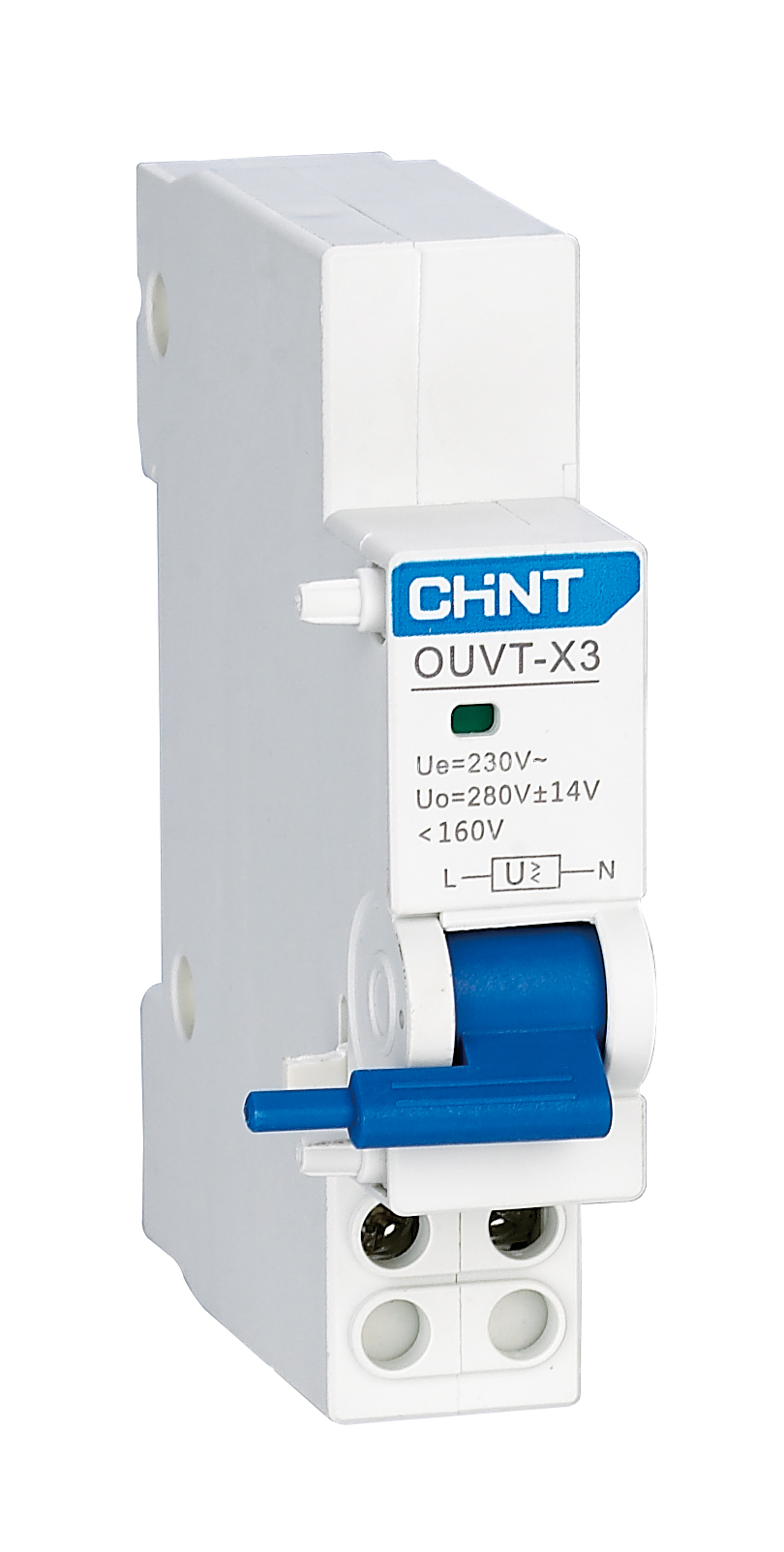 OUVT-X3: Bộ bảo vệ kết hợp thấp áp + quá áp, điện áp 230VAC, ngưỡng tác động 35%–105% Un, bảo vệ toàn diện mất áp, sụt áp và quá áp, độ chính xác cao, dùng trong hệ thống điện quan trọng, lắp DIN 35mm, kích thước 18mm